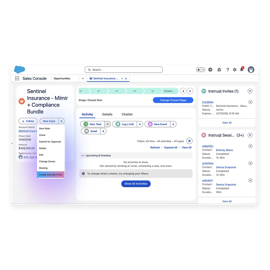 Instruqt's Salesforce integration connects hands-on product engagement directly to your pipeline, putting every signal where your team already works.